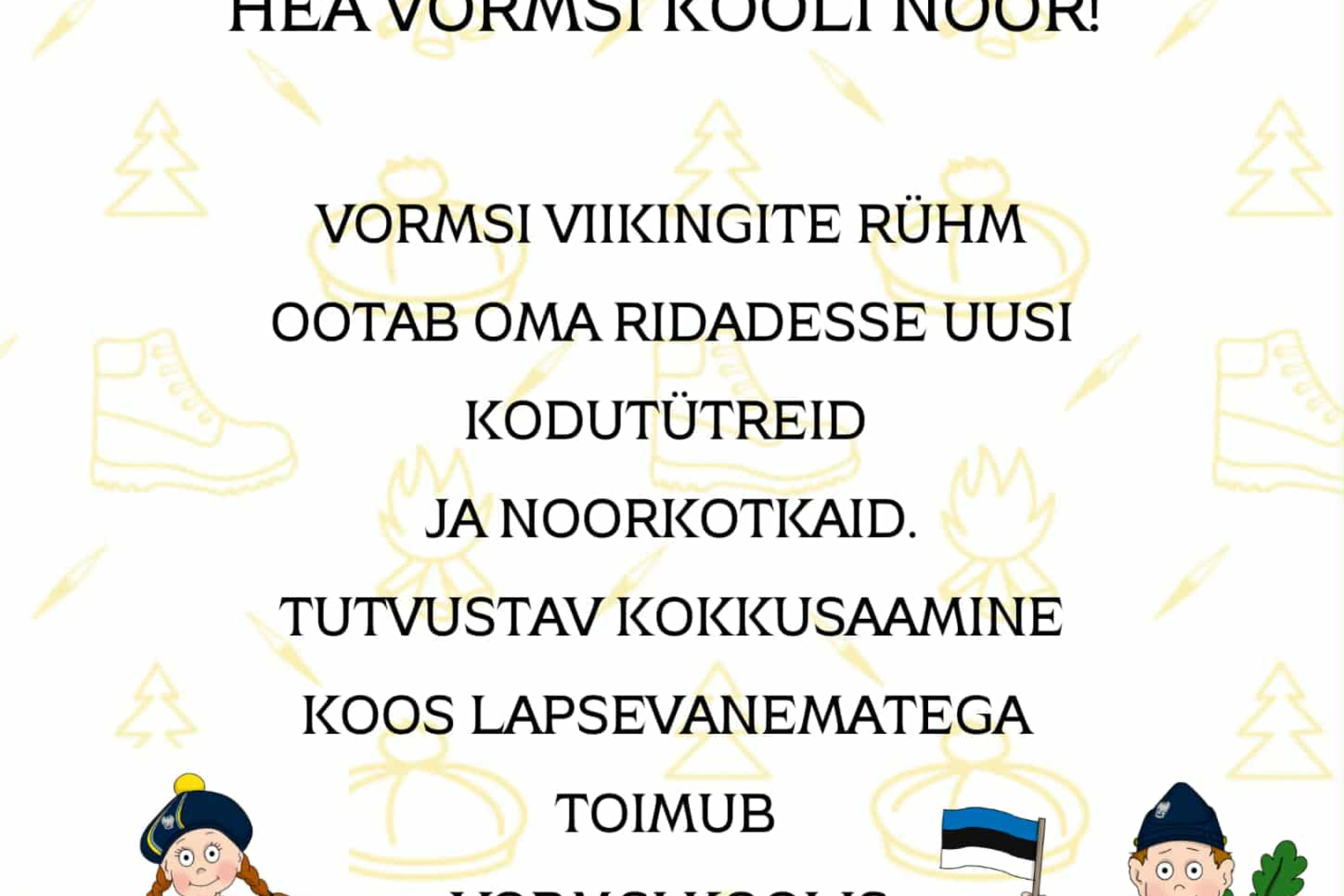 Vormsi Viikingite rühm ootab uusi liikmeid. Liituda saab alates 1. klassist, esimene võimalus liikmeks astuda 21. novembril. Kohtumisele ootame kõiki huvilisi, sh noori, kes juba on liikmed.