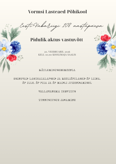 Lõpuklassi õpilased tervitavad kooliperet ja külalisi piduliku kätlemise ning Eesti Vabariigi aastapäeva kõnega. Õpilaste esituses näeme ja kuuleme tantsulisi, muusikalisi ja sõnalisi ettekandeid. Tunnustame neid, kelle pühendumus on rikastanud koolielu ning kandnud edasi ühiseid väärtusi.